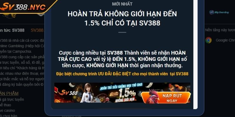 Tìm hiểu thêm >>> Khám Phá 5 Chương Trình Khuyến Mãi Sv388 Hấp Dẫn Nhất Hiện Nay
